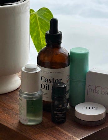 Castor Oil: this is as low cost and basic as it comes. I mix castor oil with a few drops of essential oil (usually rose, myrrh or frankincense). Before I take my dogs out into the winter wind and cold, I slather castor all over my face. It’s deeply hydrating and acts like a mini-barrier, and when I return home, my skin is less traumatized by the elements.